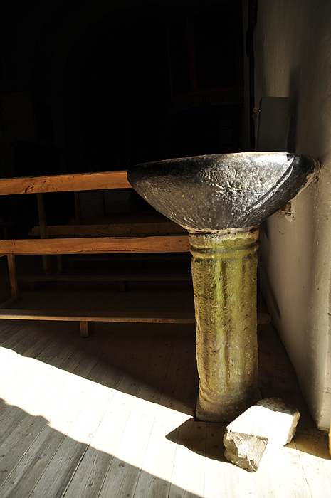 El templo original era una sencilla construcción de una sola nave con ábside de planta semicircular reforzado por dos contrafuertes. Probablemente se levantó en el siglo XIII. Posteriormente sufrió numerosas modificaciones y añadidos, como la cubierta arquitrabada de madera policromada y la torre.