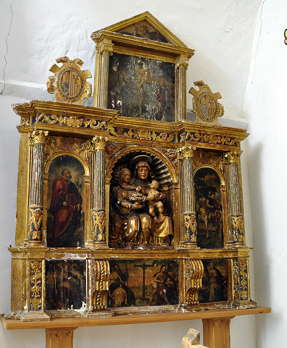 Otras obras relevantes son los cuatro retablos que visten el resto del templo, la balaustrada del coro y una pequeña escultura exenta de comienzos del siglo XVII que representa a la Virgen con el Niño. Uno de esos cuatro retablos (s. XVI), es el de Santa Ana, ubicado en la capilla del Santo Cristo. Combina pintura y escultura e incorpora en su decoración las tablas de San Pedro y de San Martín partiendo la capa con el pobre. Los expertos vinculan esta referencia a Martín de Aynsa, canónigo de la catedral de Jaca e hijo de Araguás, que encargó el retablo en 1588.