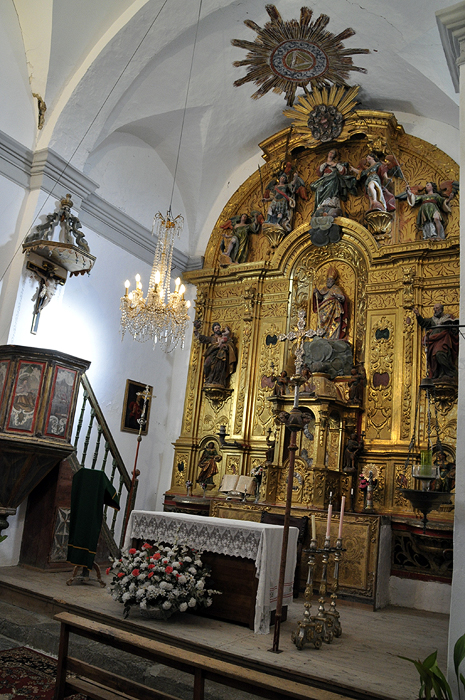El resto de retablos, de estilo barroco, presiden las capillas laterales y están dedicados a la Virgen del Rosario y al Santo Cristo. En este último se localiza un interesante Sagrario tardogótico. Igualmente merece una mención la balaustrada del coro, del siglo XVI, que ofrece una atractiva mezcla de estilos artísticos como las tracerías flamígeras del último periodo gótico u ornamentos renacentistas.